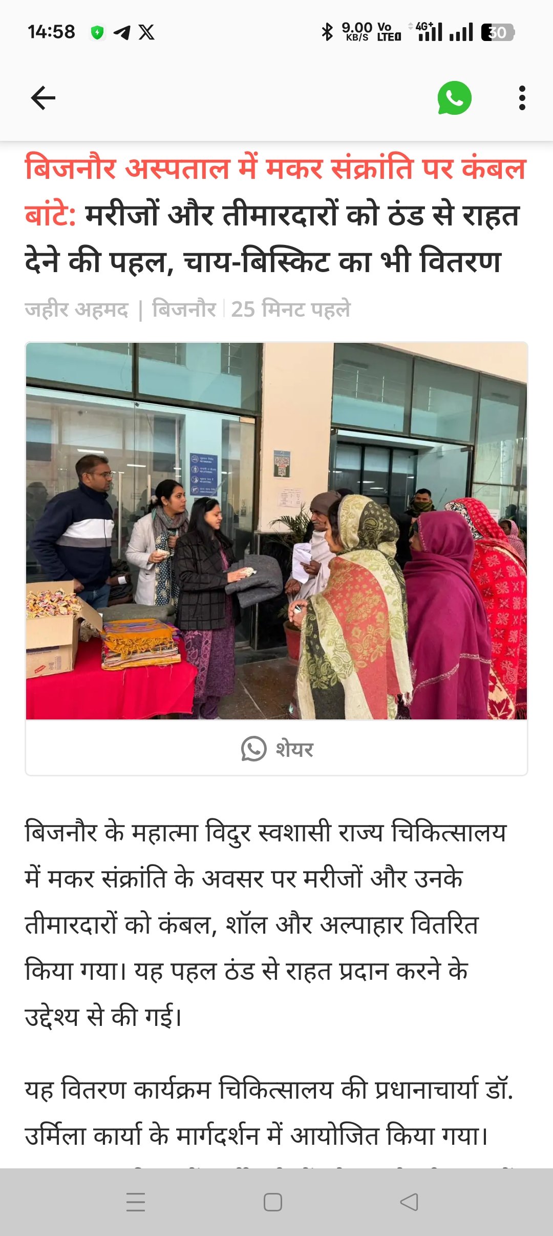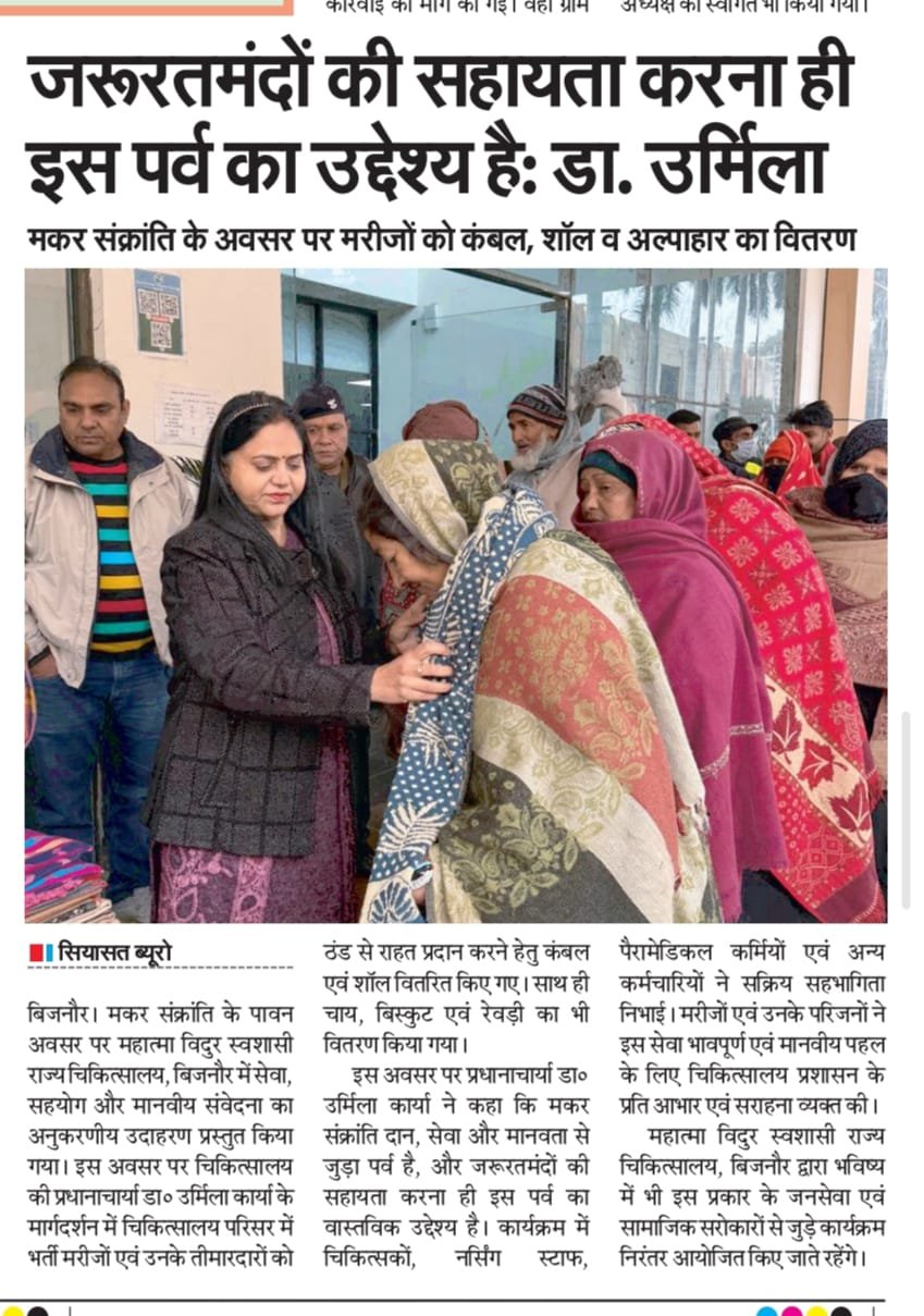 On Makar Sankranti blankets and refreshments were distributed to patients as part of a humanitarian initiative